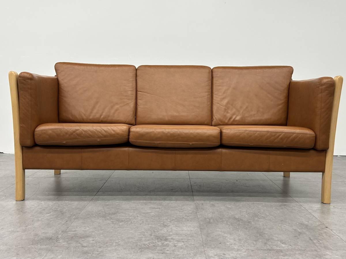 Danish Caramel Leather Sofa