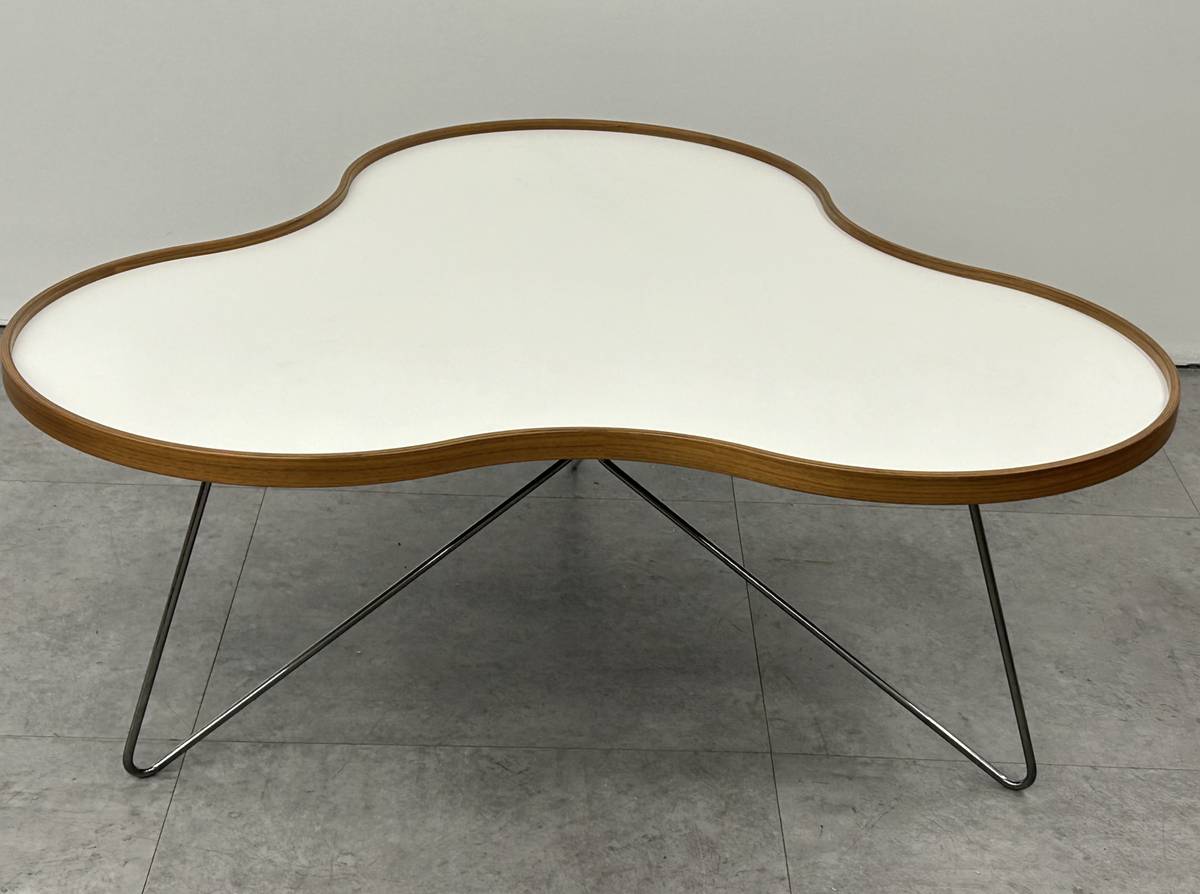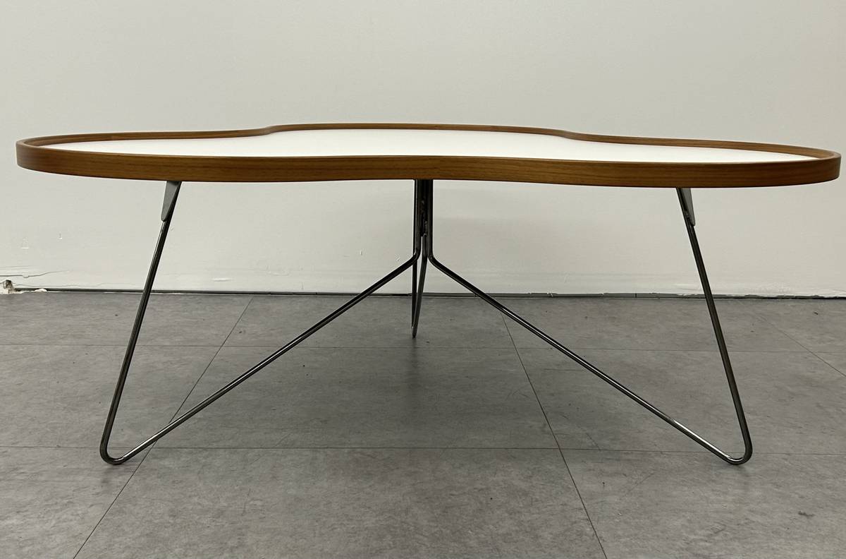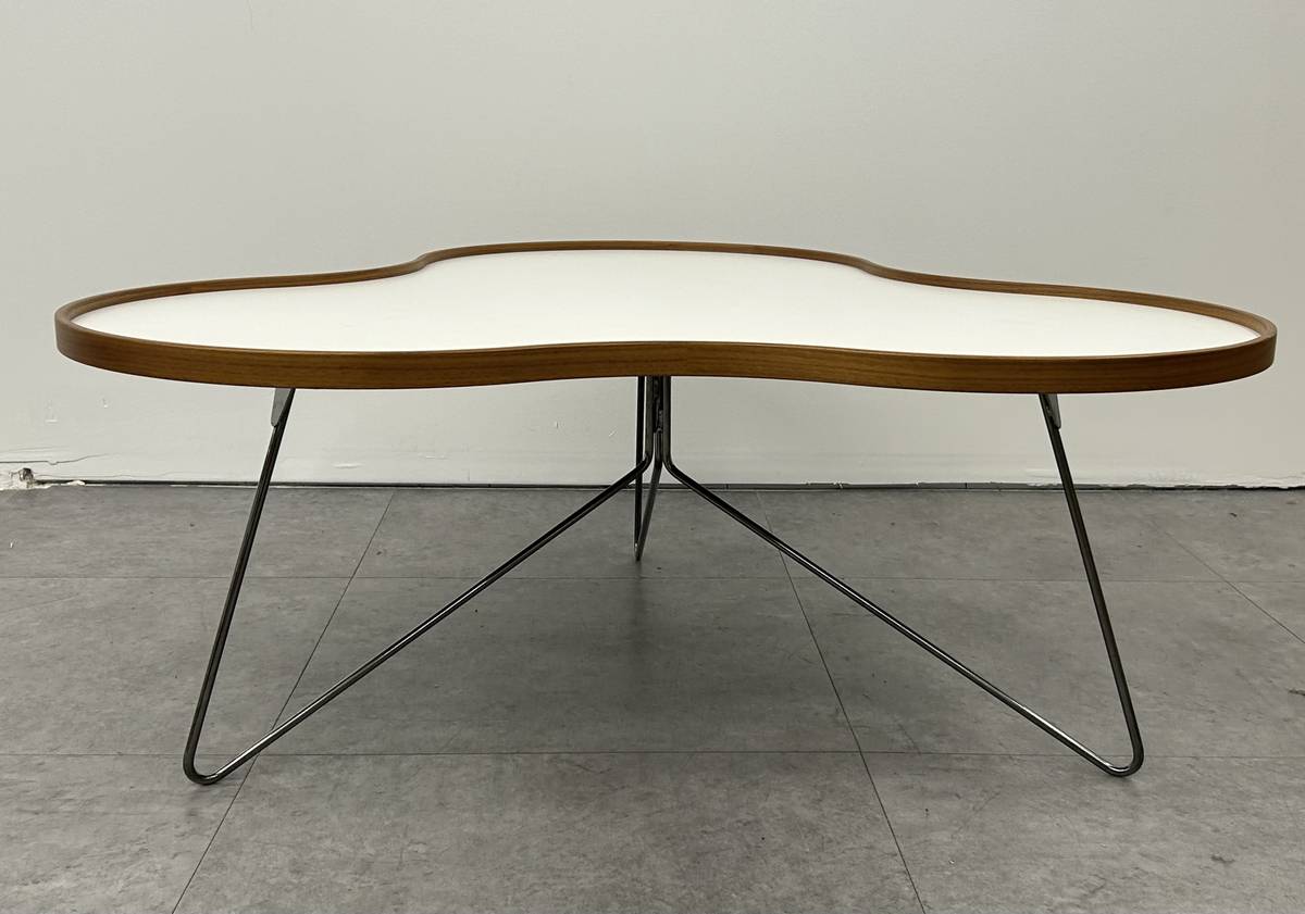 1 Remaining$1200 EachProducer: Swedese Designer: Christine SchwarzerModel: Flower Coffee Table (size large)Made In: SwedenOrganically shaped white laminate table top edged in woodChrome wire base