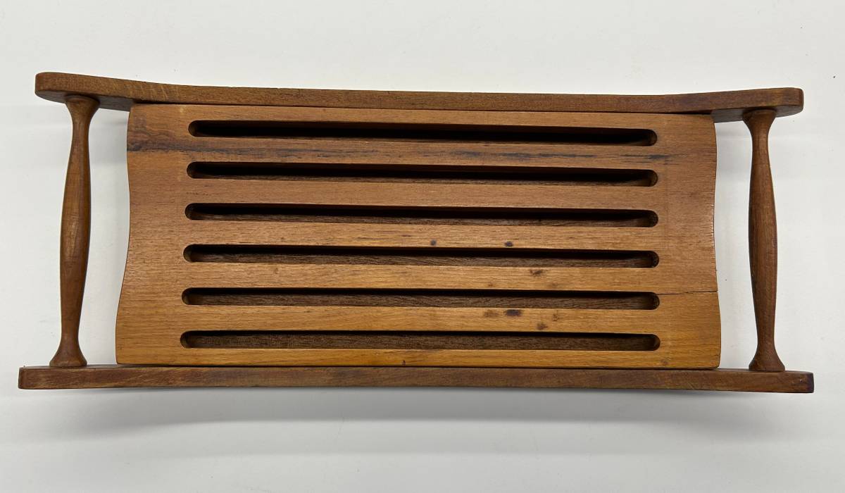 Unique design Crumbs fall through cracks as bread is sliced Hinged top lifts up for easy cleaning
