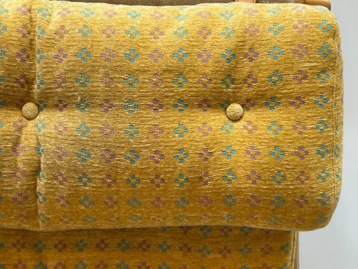 Gold fabric upholstery with turquoise and rose print