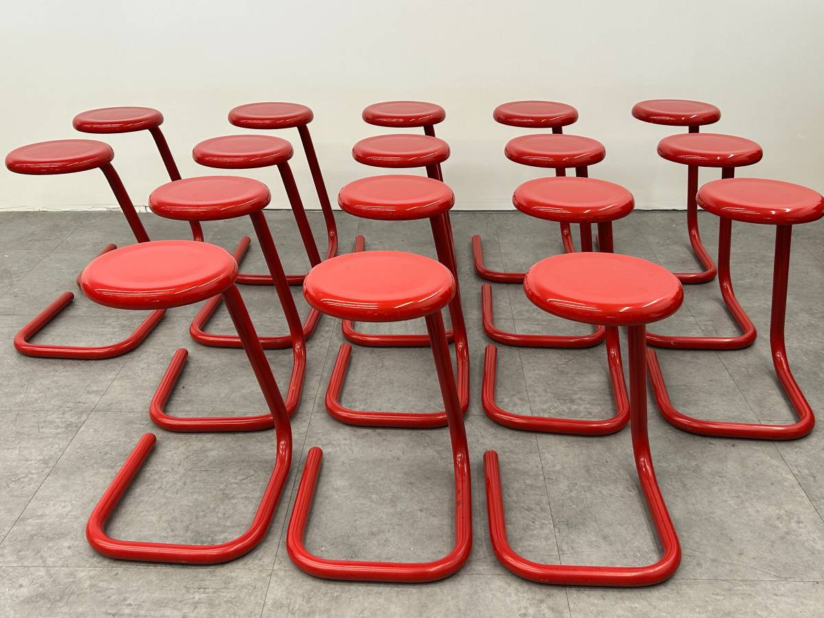 Authentic Paperclip stool8 available - $235 eachOriginal Kinetics designModel K700 produced by HaworthMade in the U.S.Single piece tubular steel constructionRed finishSeat diameter 12"Height: 23.5"Base: 17.5" x 16"Very good condition!